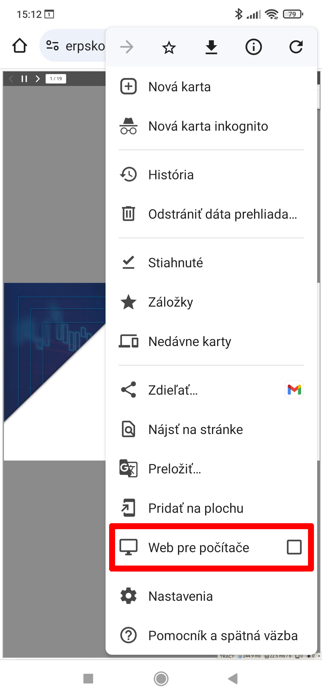 V nevyhnutných prípadoch zobrazenie materiálov trochu vylepší režim prehliadania "Web pre počítače", viď. obrázok nižšie (Chrome, Android):